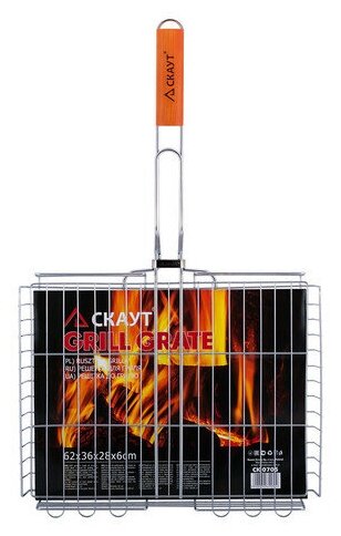 Решетка для гриля глубокая 38х30х6 см. из хромированной стали скаут СК-0705 с деревянными ручками (18) интересное: