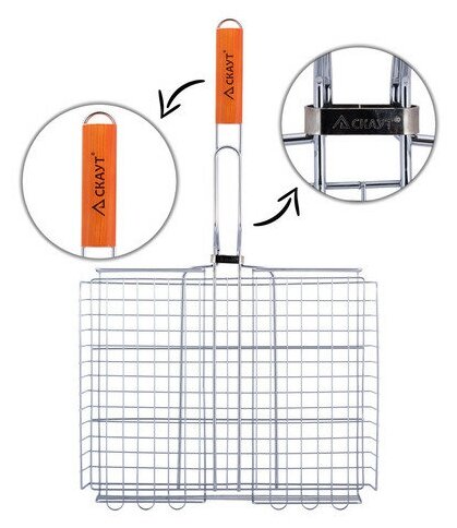 Купить Решетка для гриля глубокая 38х30х6 см. из хромированной стали скаут СК-0705 с деревянными ручками (18)