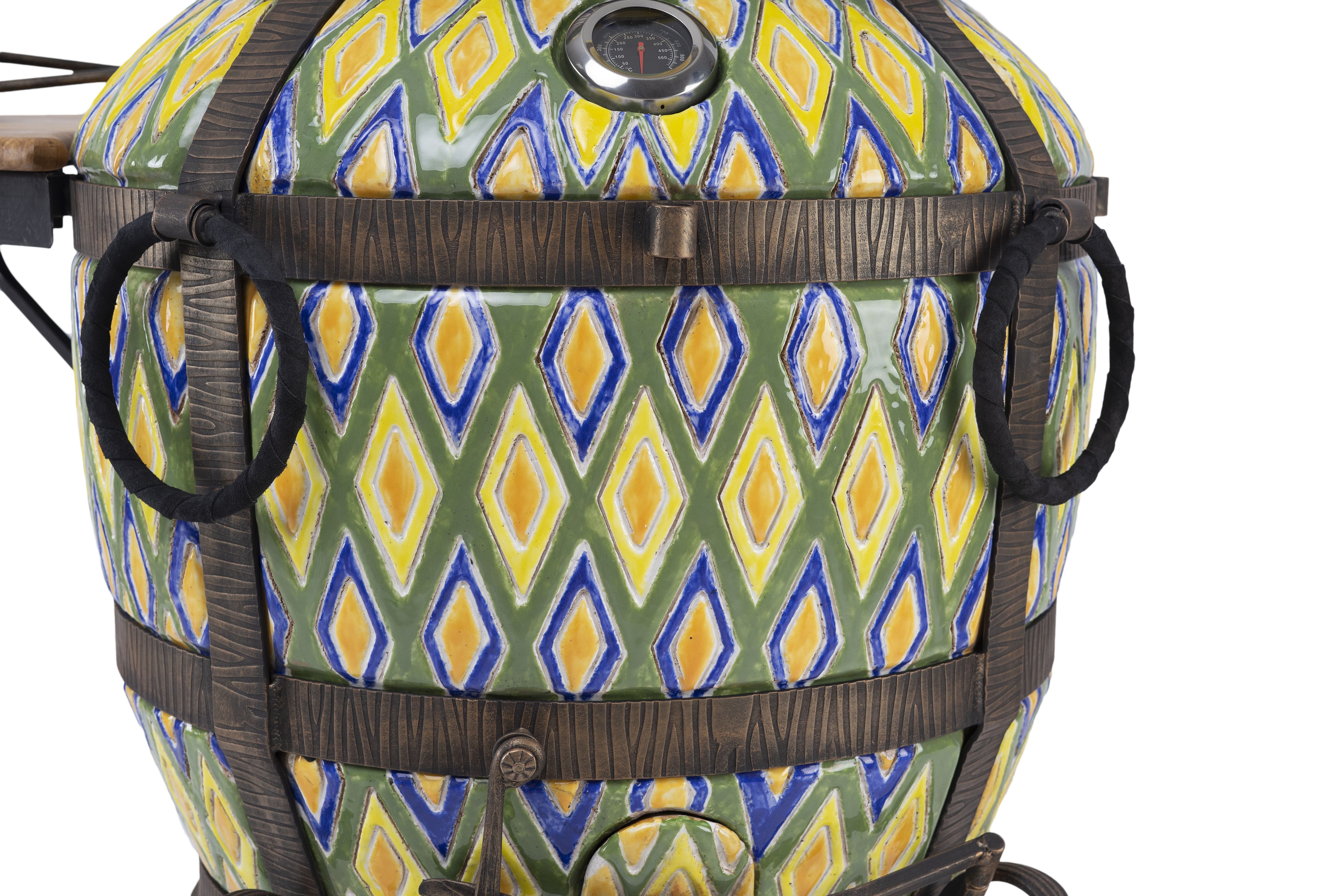 Тандыр Тамерлан со съемной крышкой, на колесах, цвет морская волна / чехол и сборник рецептов в подарок