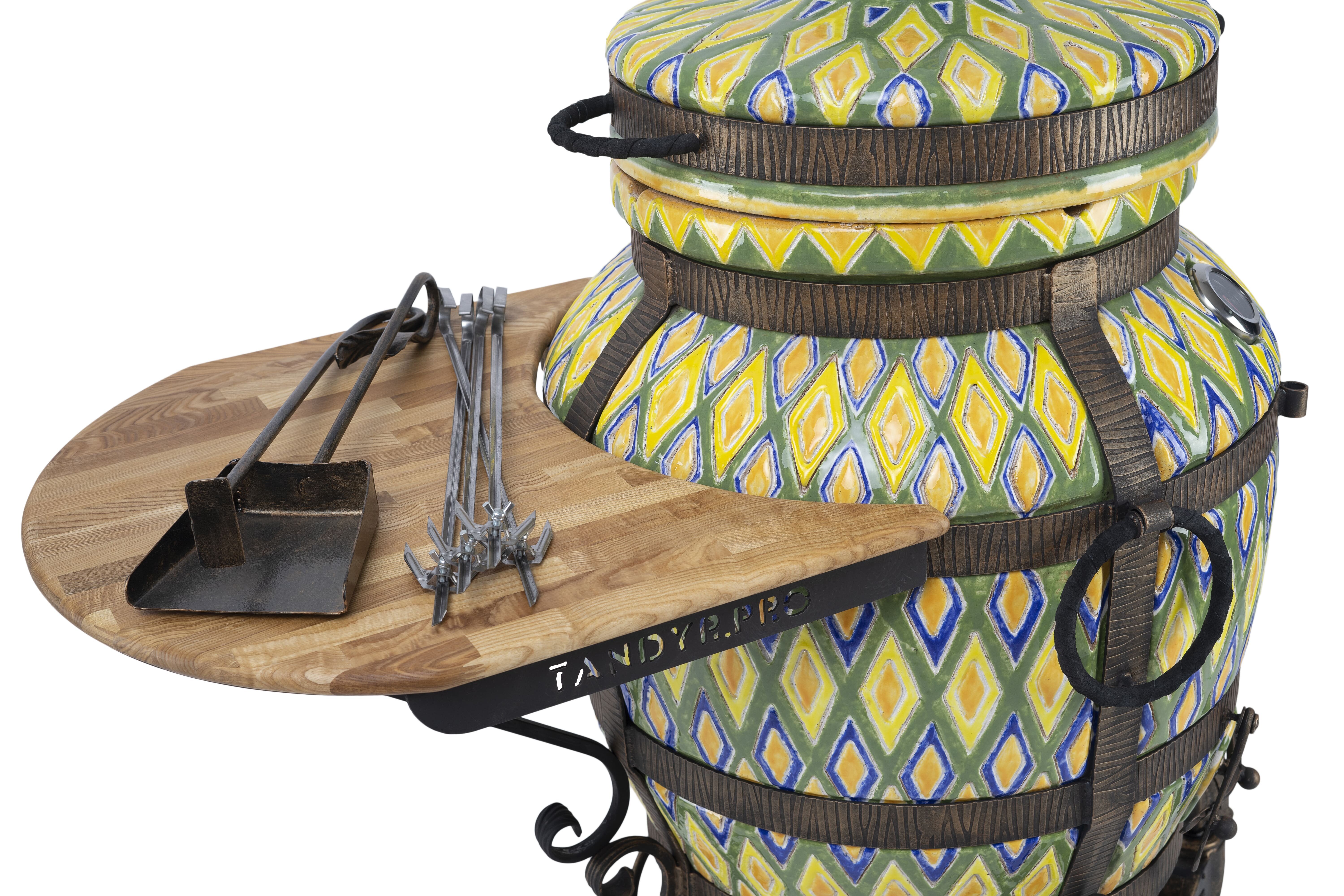 ЭкоТандыр Восточный с откидной крышкой и поддувала, с 2 деревянными столами, на колесах