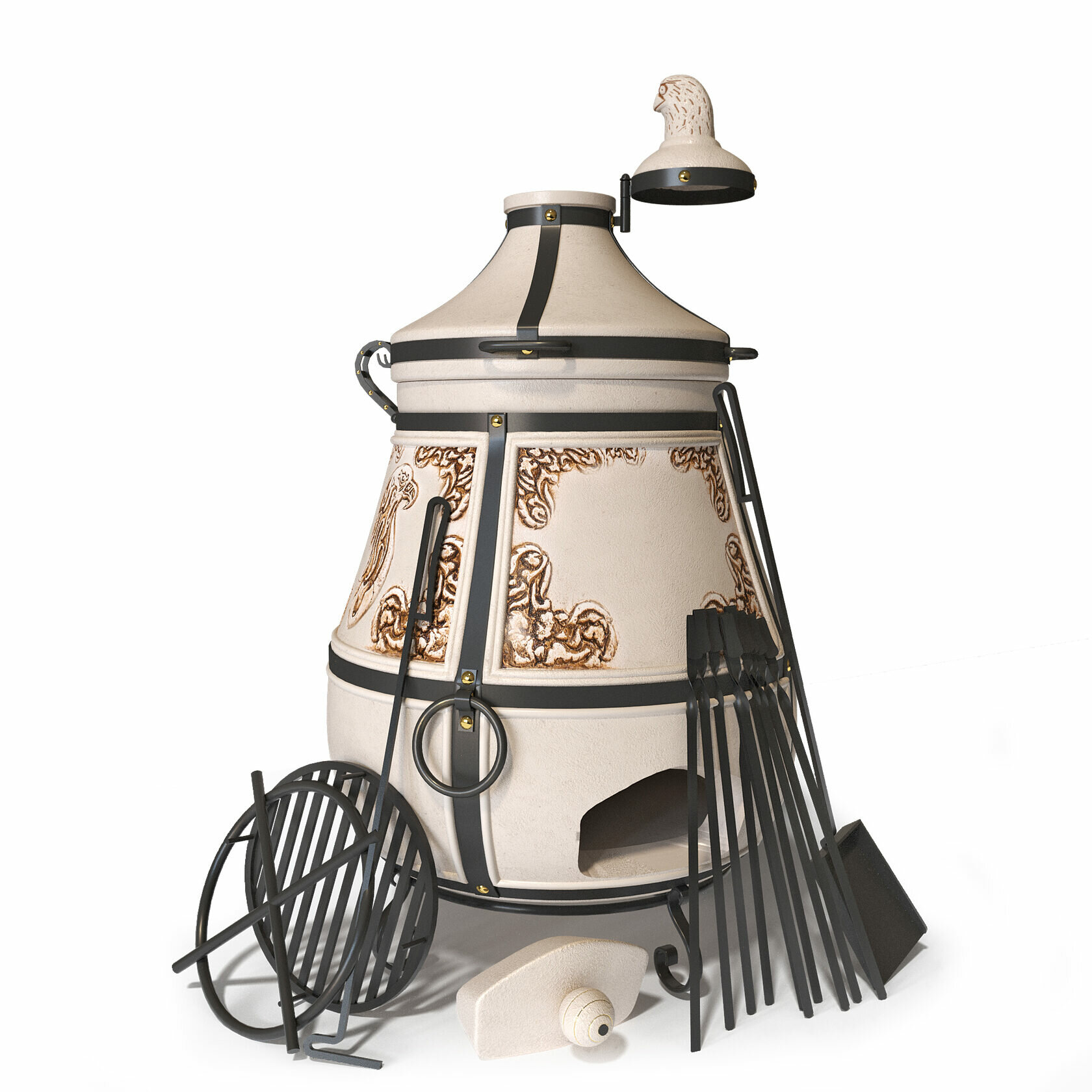 Аполлон с откидной крышкой - Комплект "Dacha" - тандыр для дачи средний - 50 л, Технокерамика.