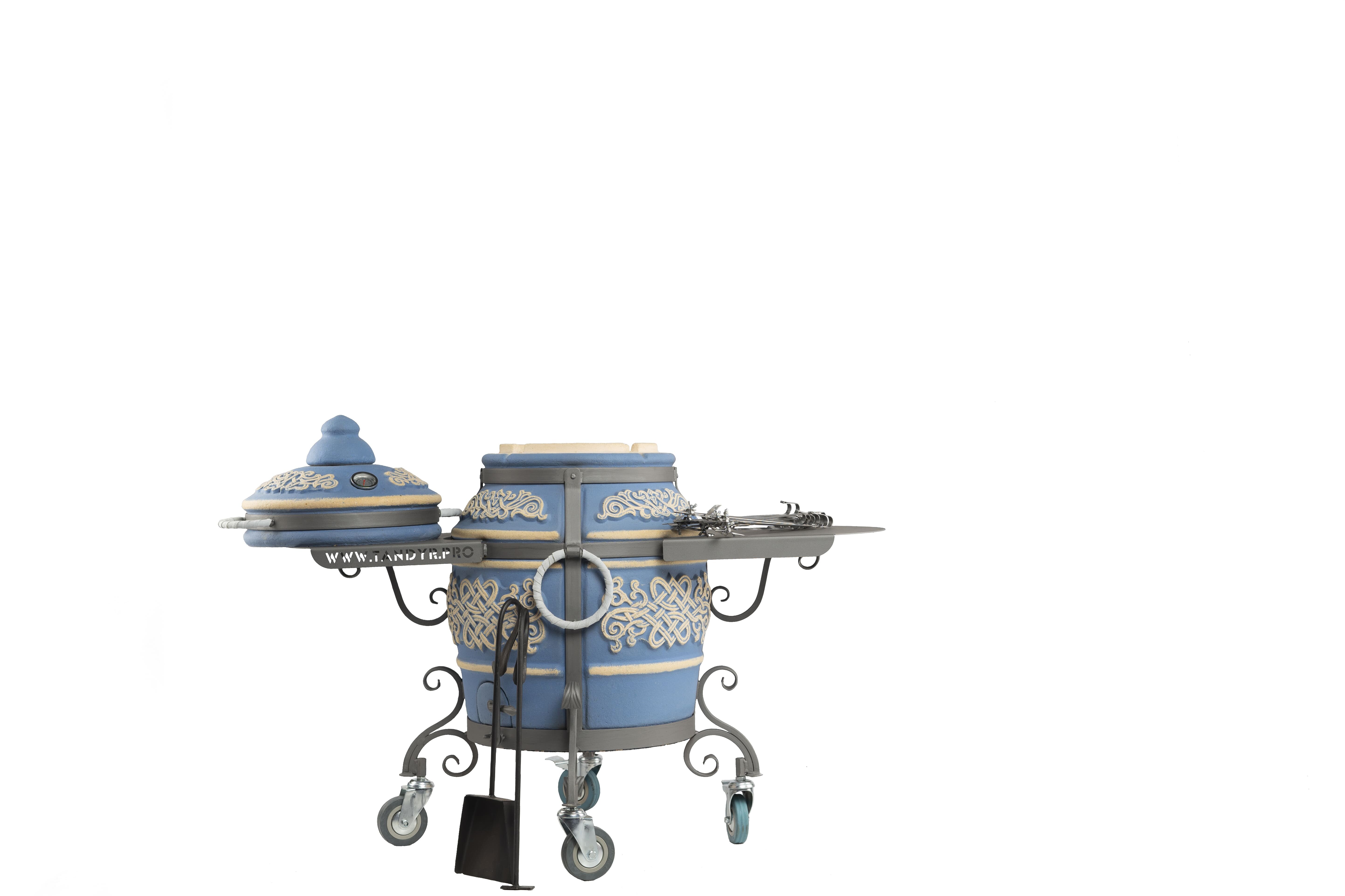 Купить ЭКО Тандыр Тамерлан - Морская волна (матовый) с колесами и двумя столами