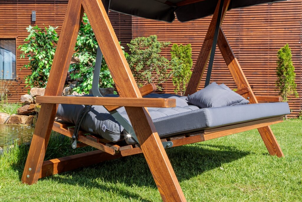 Деревянные качели Lyon раскладывающиеся в комплекте с подушками интересное: