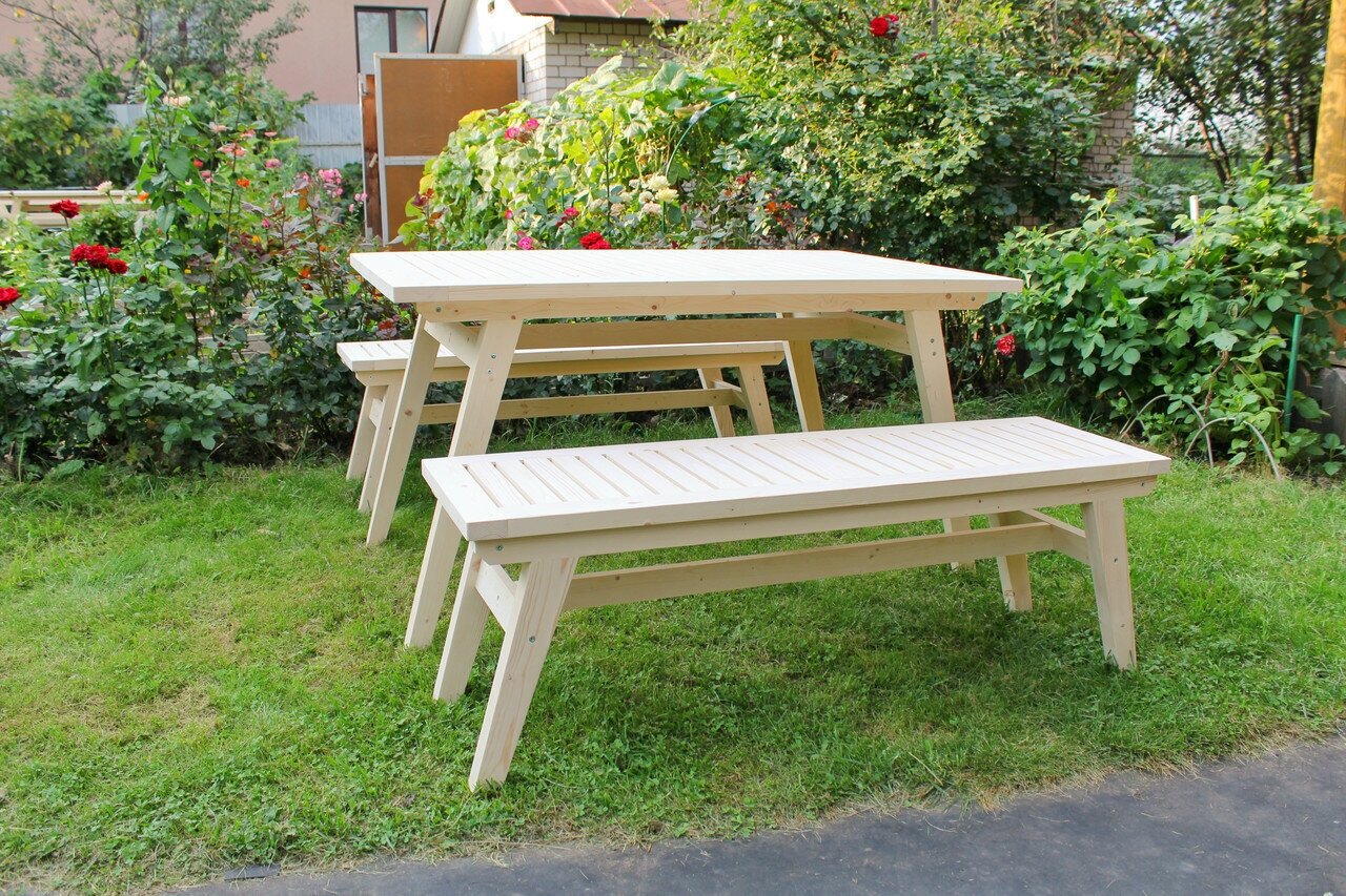Комплект садовой мебели из массива дерева (стол 1,4м, 2 лавки) на 6 человек