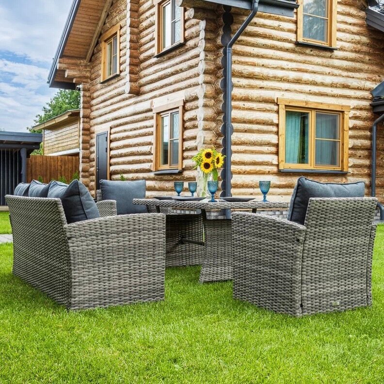 | Комплектация | трёхместный диван, обеденный стол, 2 кресла, 2 пуфа |