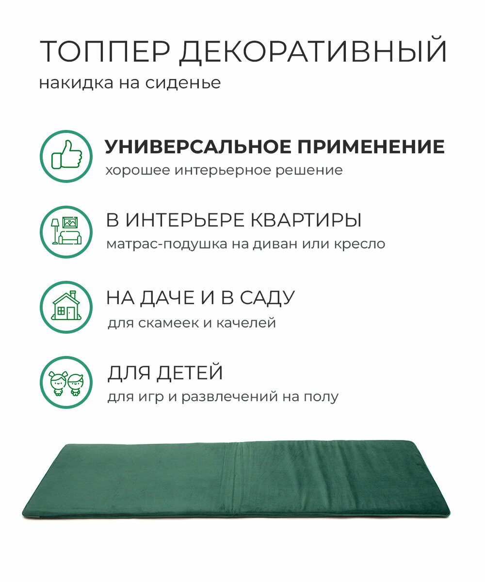 Купить Накидка покрывало матрас-топпер подушка на качели сиденье шезлонг скамейку садовую мебель 190*60*3 поролон велюр WOWPUFF изумруд