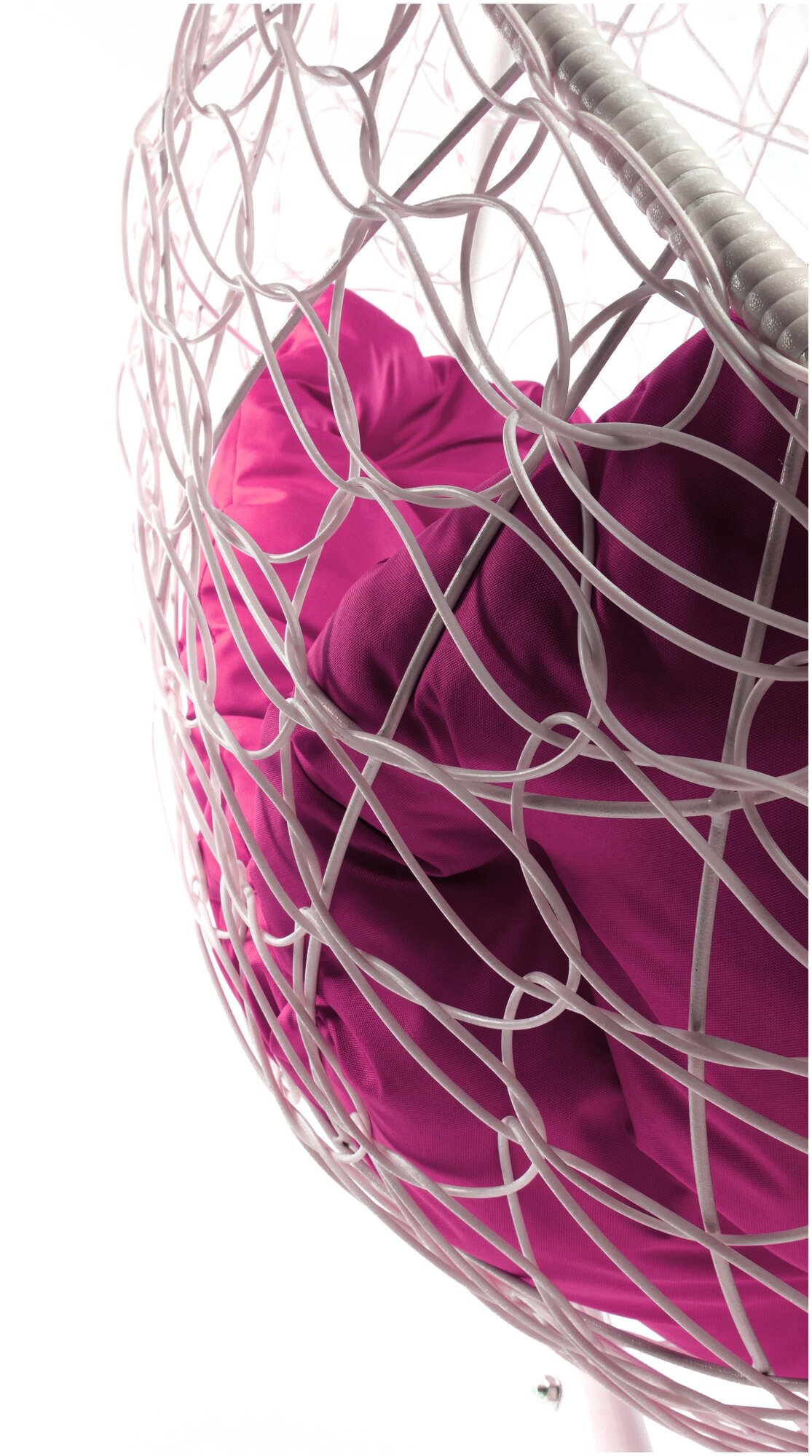 Подвесное кресло овал с ротангом белое, розовая подушка