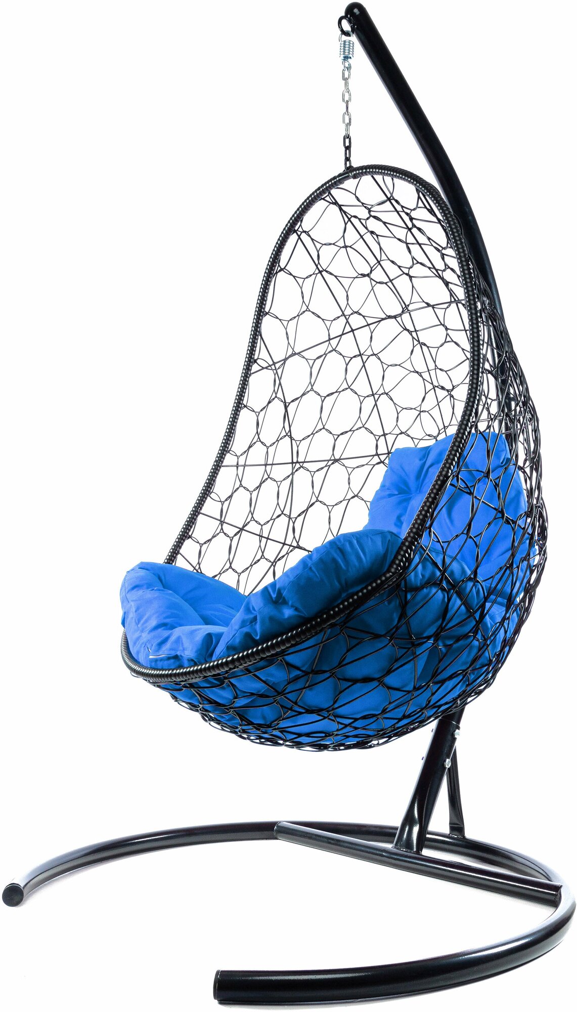Подвесное кресло M-group овал с ротангом чёрное синяя подушка