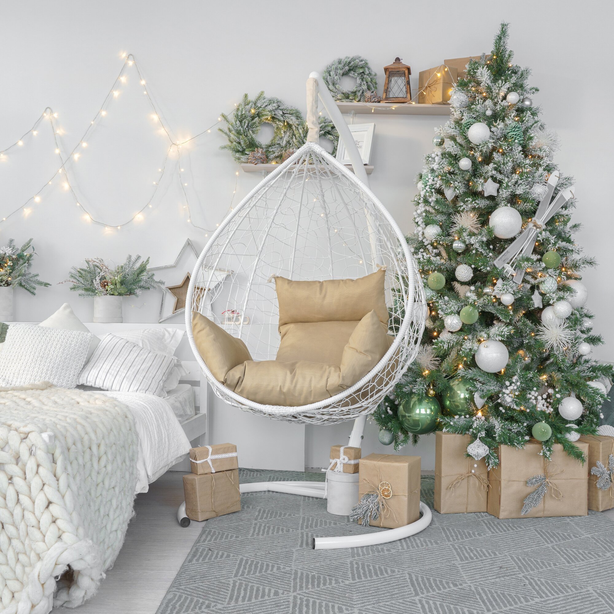 Купить Подвесное кресло-кокон SEVILLA белый + каркас (бежевая подушка)