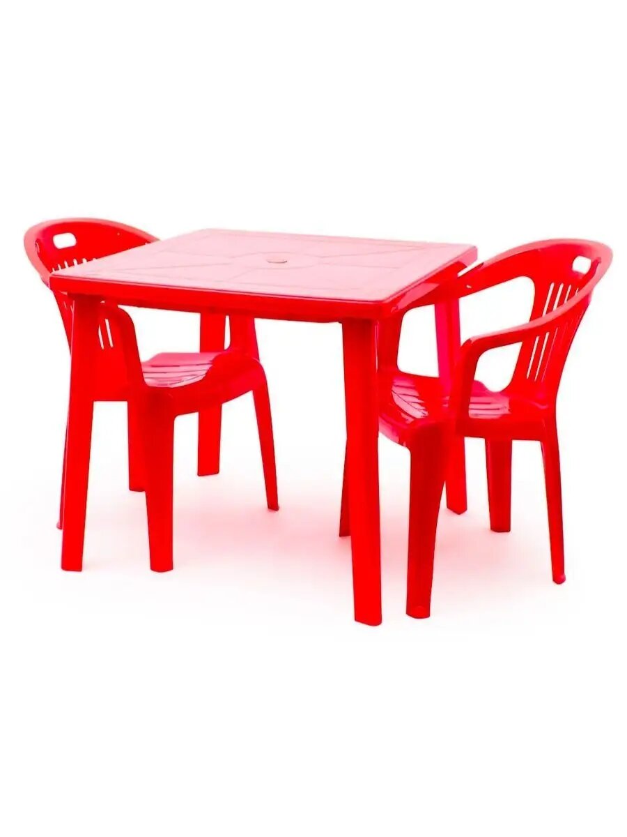 Стол садовый квадратный пластиковый красный 80х80 h71см