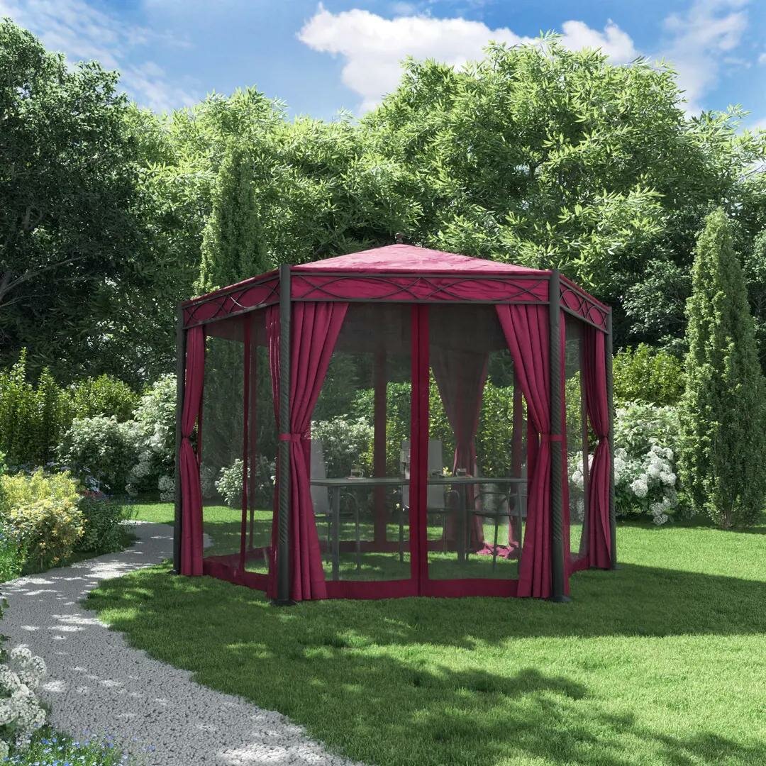 Шатер садовый лето, 3.5x3.5х2.7 м шестиугольный, сталь, цвет фуксия с москитной сеткой. Легко собирается; защищает от солнечных лучей и насекомых
