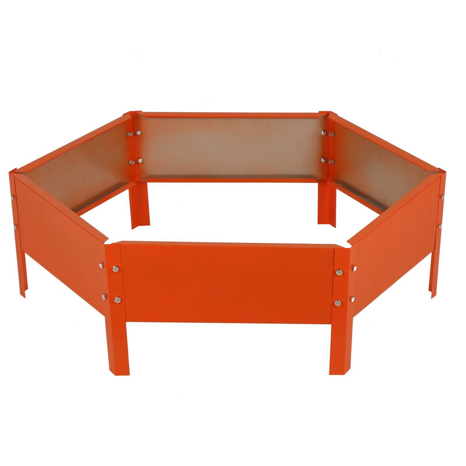 Клумба садовая оцинкованная, одноярусная шестиугольная для дачи, сада и огорода, декоративное ограждение сборное для цветов, диаметр 140 см, высота 15 см, цвет желтый