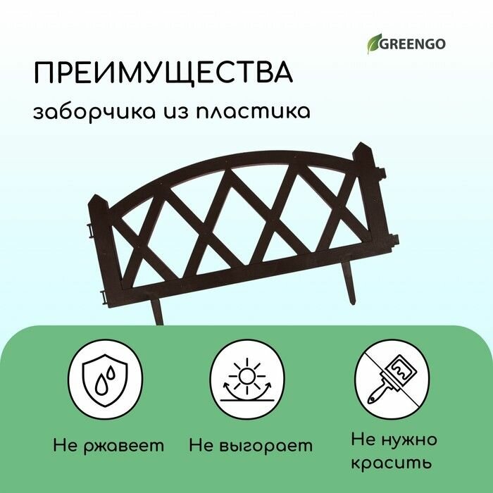 Купить Greengo Ограждение декоративное, 35 × 232 см, 4 секции, пластик, коричневое, MODERN, Greengo