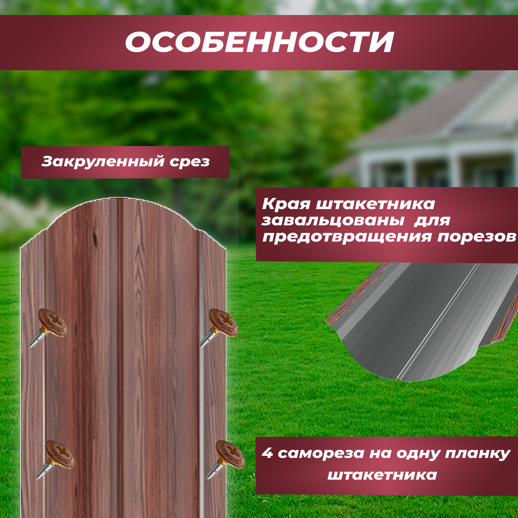 Штакетник металлический Волна (двусторонний окрас, цвет винно-красный, высота 1.5 м, ширина планки 11 см, 20 шт., саморезы в комплекте)