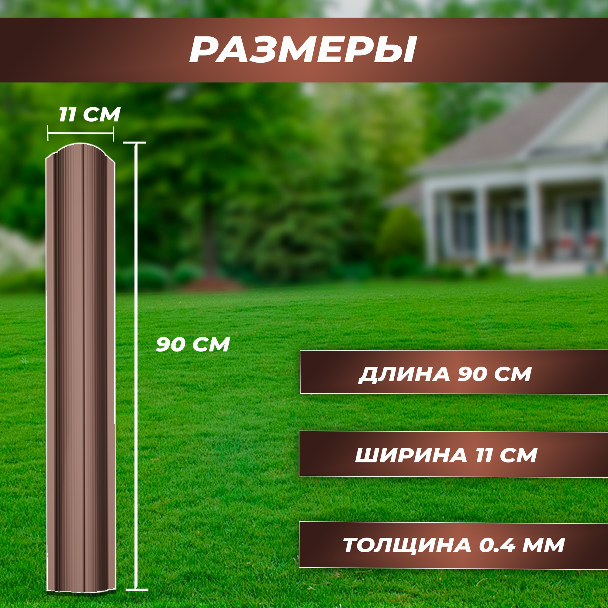 Купить Штакетник металлический Волна (односторонний окрас, цвет шоколадно-коричневый, высота 90 см, ширина планки 11 см, 20 шт., саморезы в комплекте)