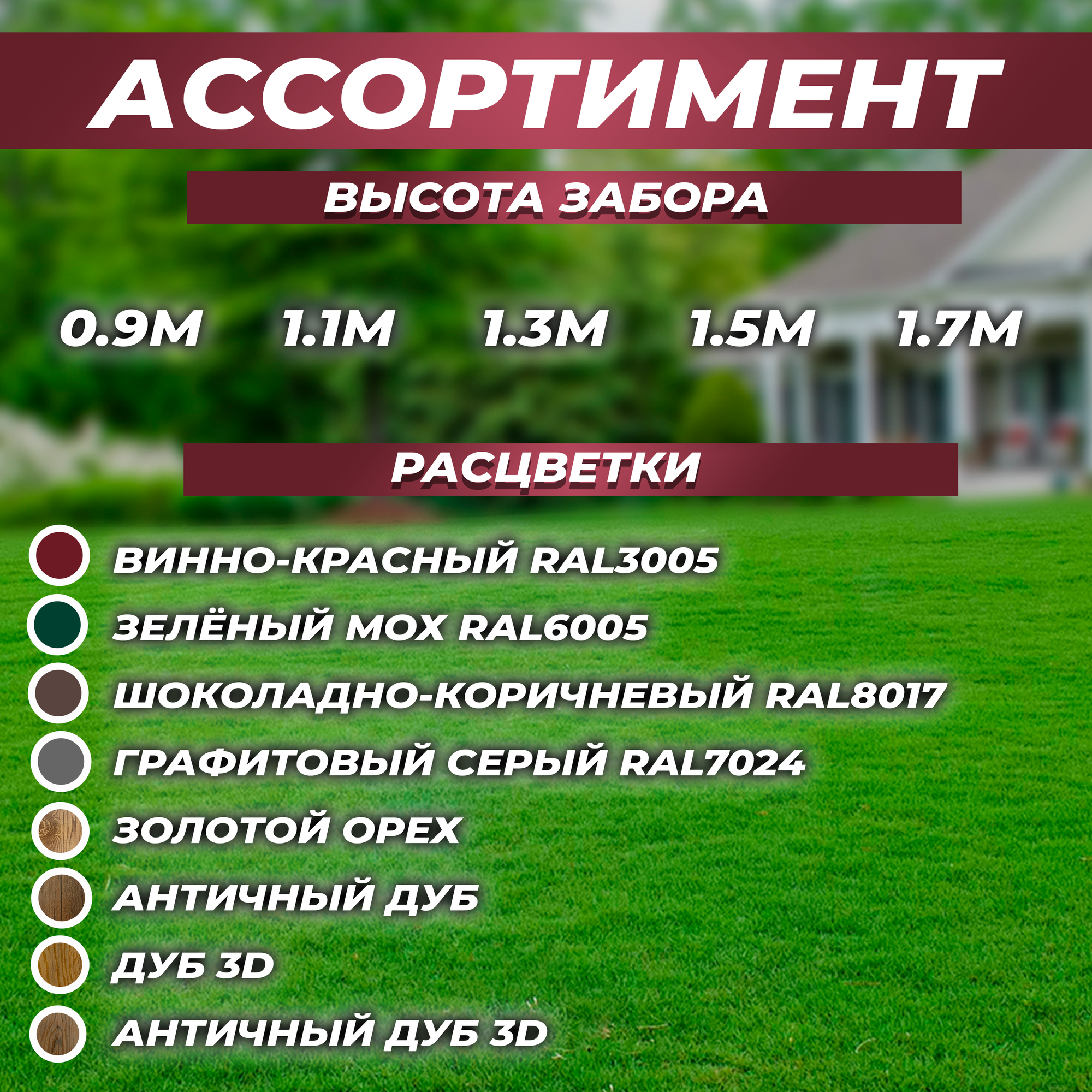 Штакетник металлический Классик (двусторонний окрас, цвет винно-красный, высота 1.5 м, ширина планки 100 мм, 20 шт., саморезы в комплекте)