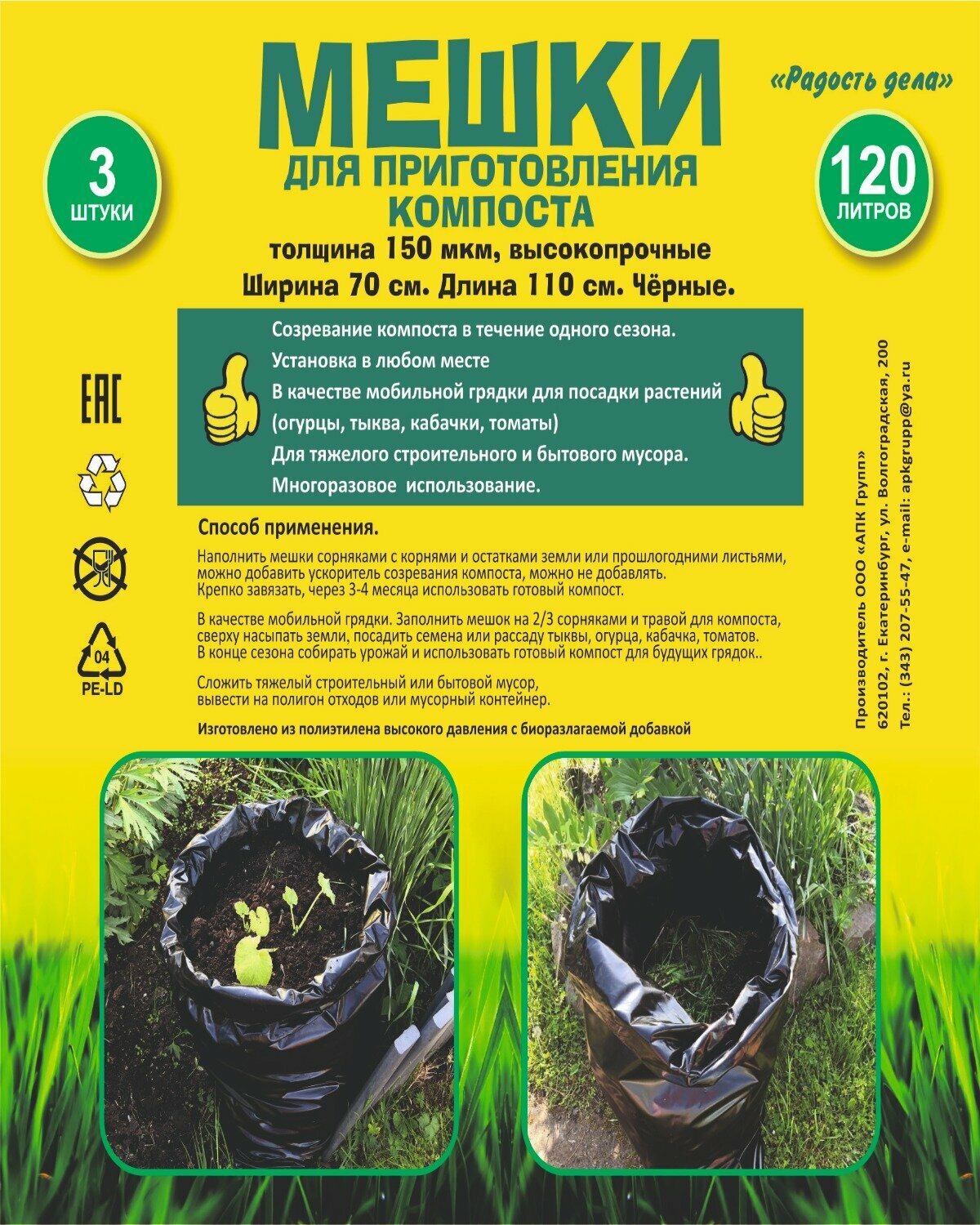 Ниже Вы можете прочитать отзывы на Мешки для компоста, мусора, полиэтиленовые, черные, 70х110 толщ 150, 120 л, 3 шт, ознакомится с подробными характеристиками, посмотреть интересные обзоры и фотографии на Мешки для компоста, мусора, полиэтиленовые, черные, 70х110 толщ 150, 120 л, 3 шт.