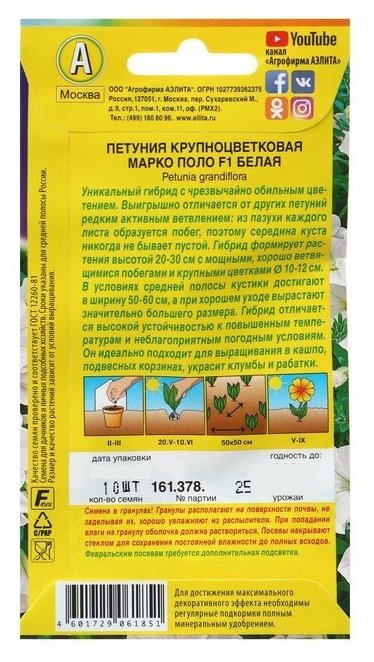 Петуния "Аэлита" Марко Поло белая F1 10шт интересное: