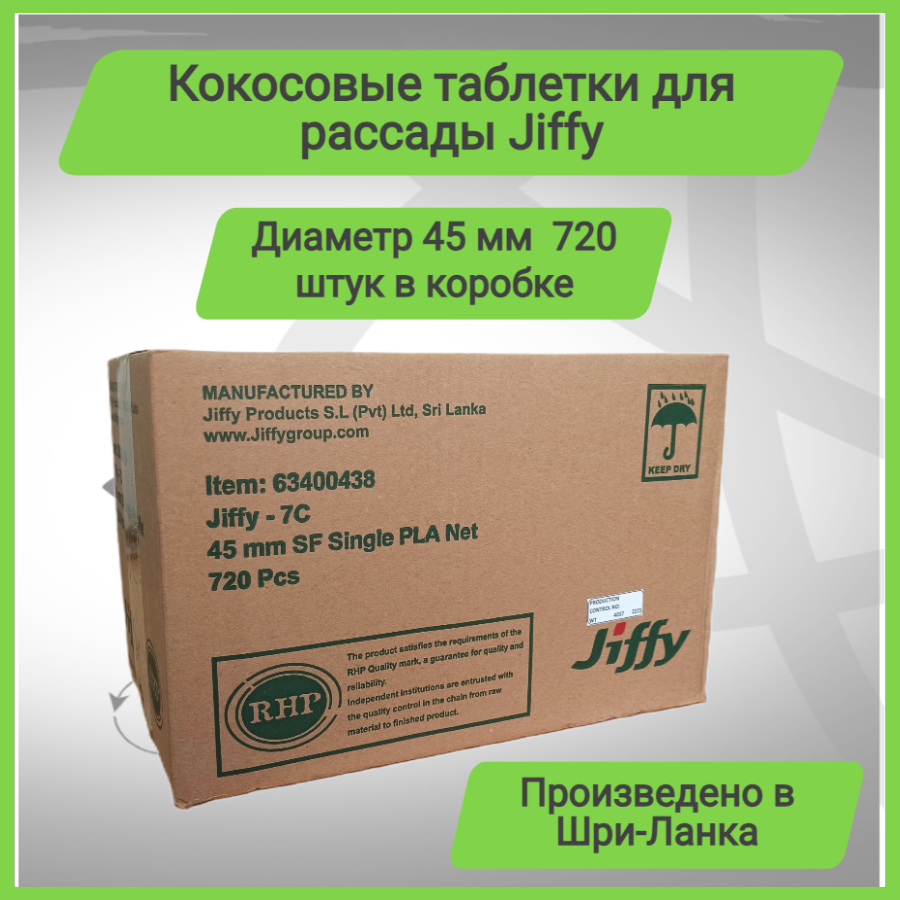 Кокосовые таблетки Jiffy 7C 45 мм; 720 штук в коробке; интересное: