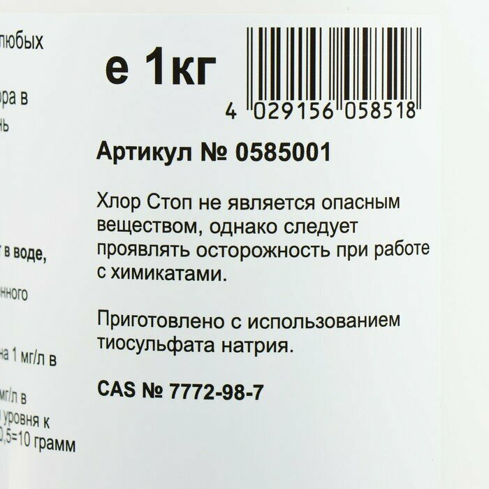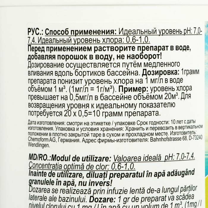 Купить Средство для быстрого снижения уровня хлора в бассейне к идеальному Хлор-стоп 1 кг./В упаковке шт: 1