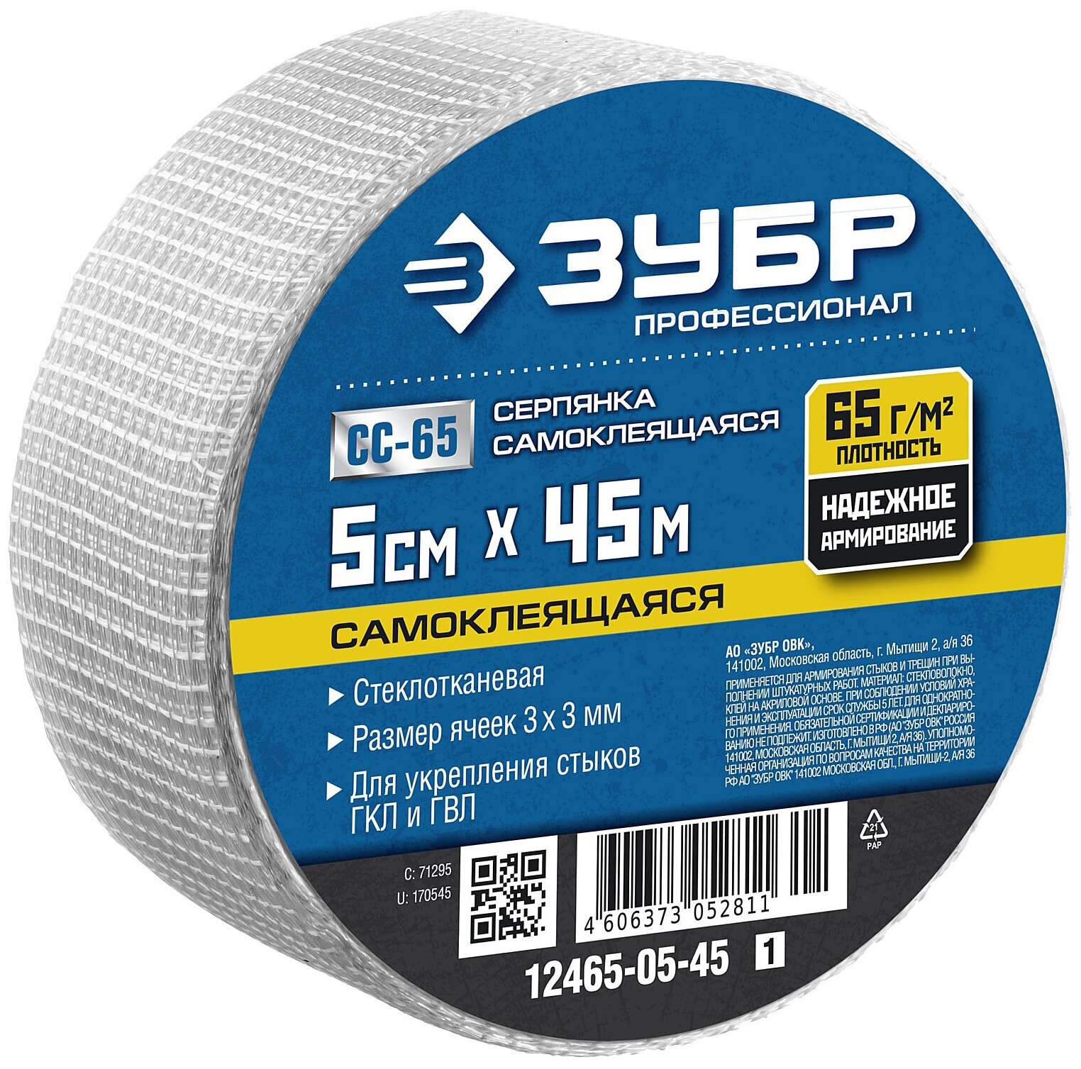 Серпянка самоклеящаяся СС-65, 5см х 45м, ЗУБР Профессионал 12465-05-45