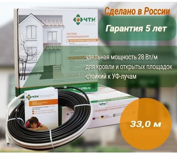 Обогрев кровли/площадок/желобов/водостоков/Система Антилед ЧТК СН-28-924, длина 33,0м