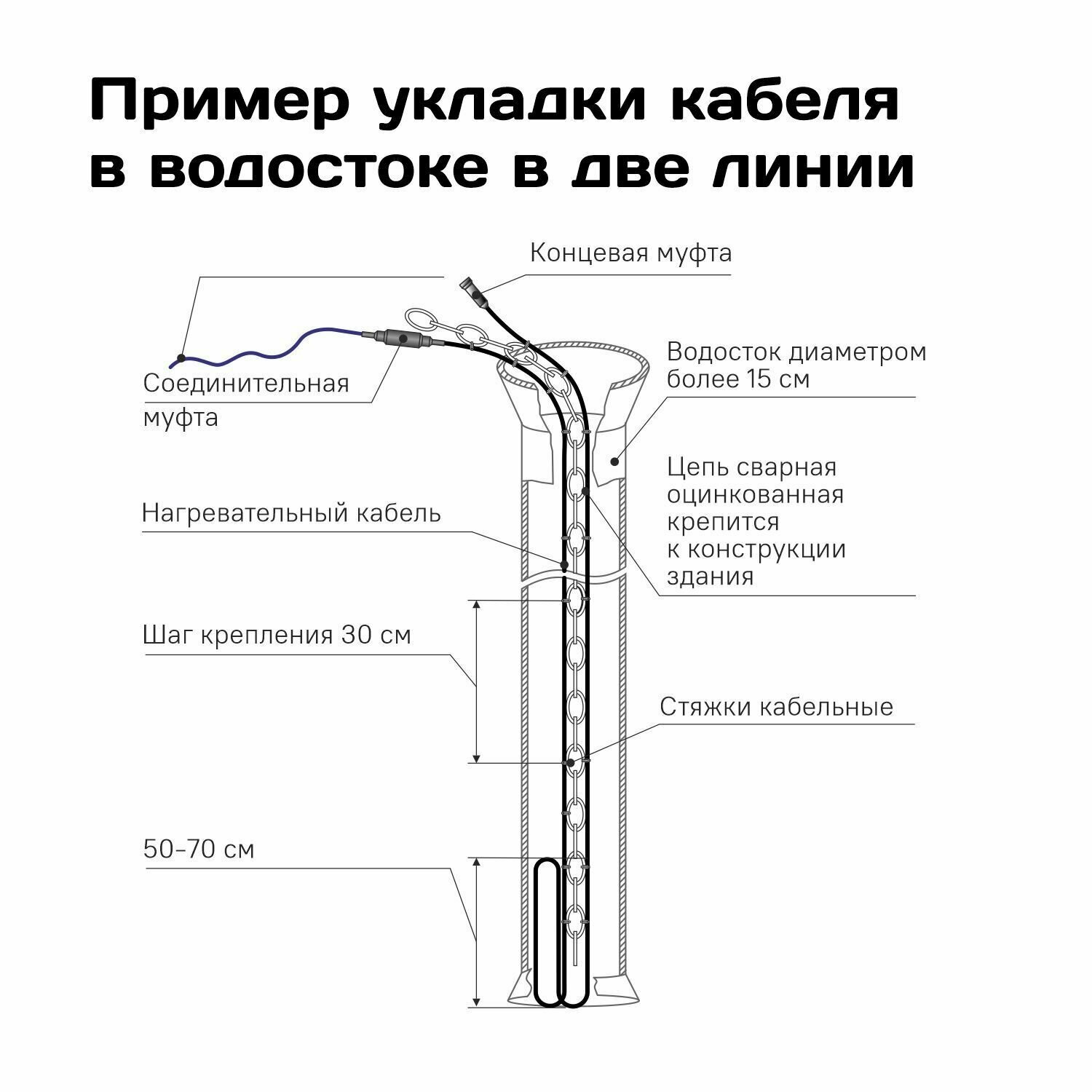 Система антиобледенения ЧТК. Греющий кабель для обогрева кровли, желобов, водостоков и открытых площадок 6,6 м, 185 Вт.