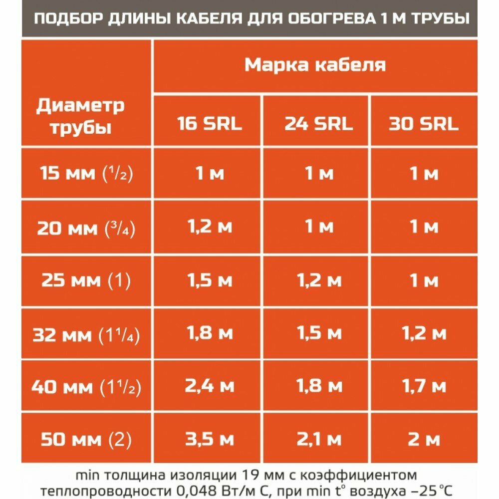 Греющий кабель на трубу SRL 16-2, 45 м, 16 вт/м