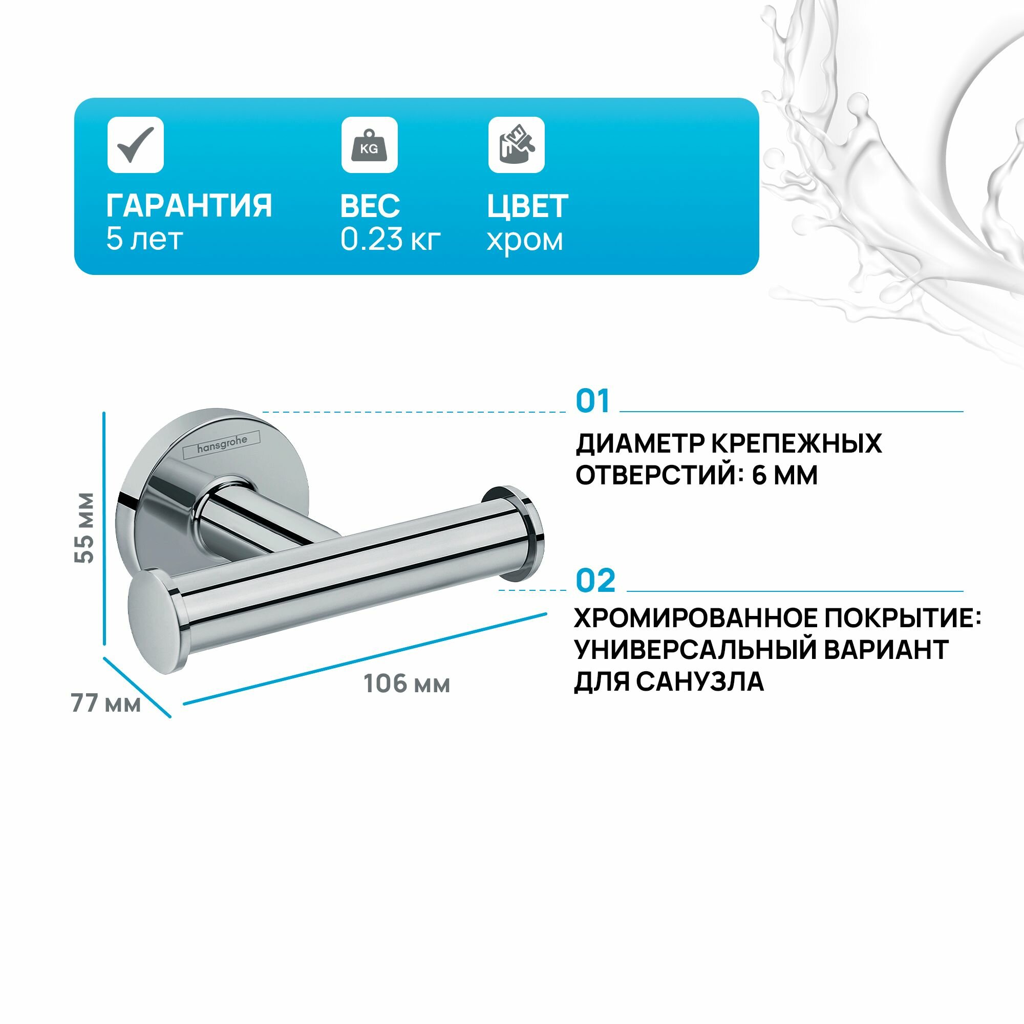 Крючок hansgrohe Logis Universal двойной 41725000, хром