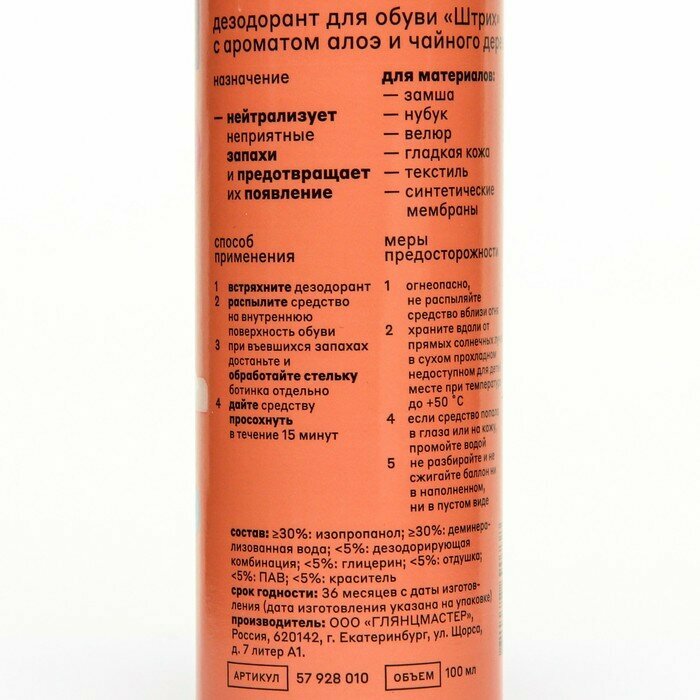 Штрих Дезодорант для обуви Штрих, аромат алоэ и чайного дерева 100 мл интересное: