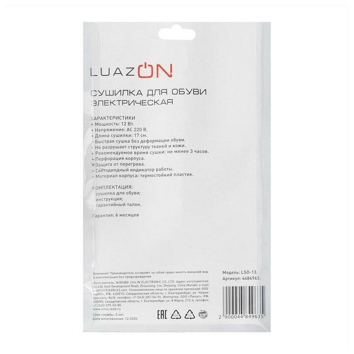 Сушилка для обуви LuazON LSO-13, 17 см, 12 Вт, индикатор, синяя Luazon Home 4484963 .