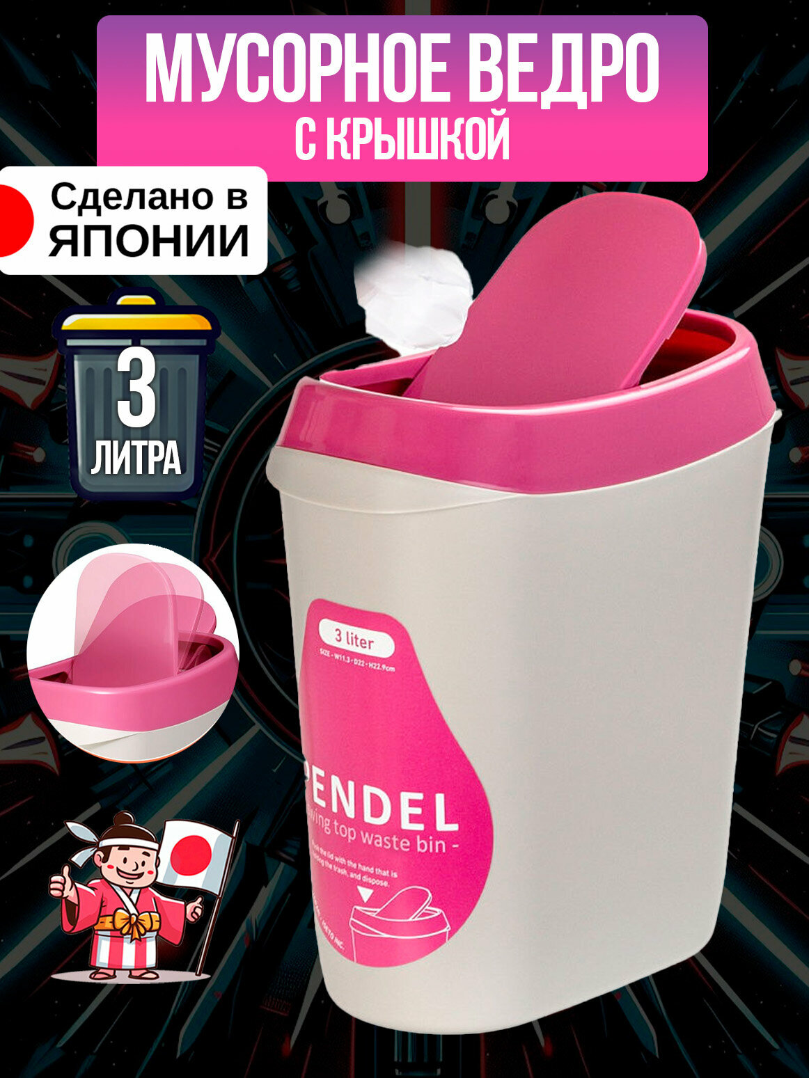 Мусорное ведро 3 л с вращающейся крышкой 22*11,3*22,9 см Iseto интересное: