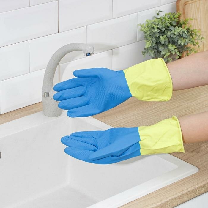 Купить Перчатки хозяйственные резиновые Доляна, размер M, плотные, 80 гр, цвет микс