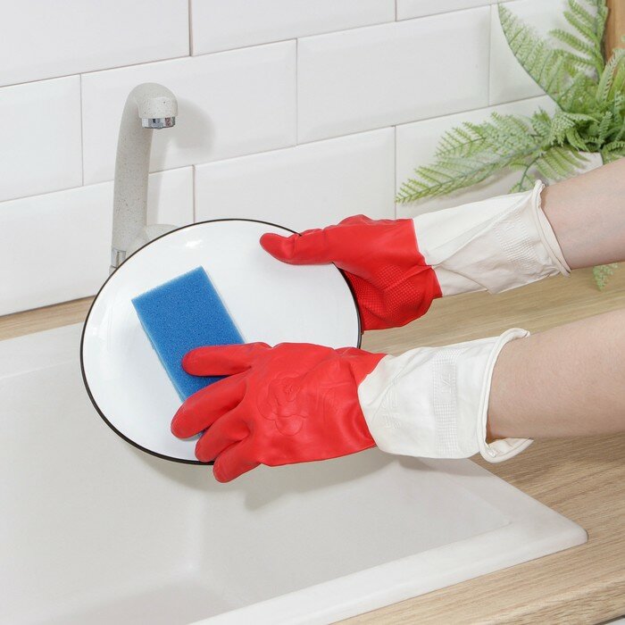 Купить Перчатки хозяйственные резиновые Доляна, размер XL, плотные, 80 гр, цвет микс
