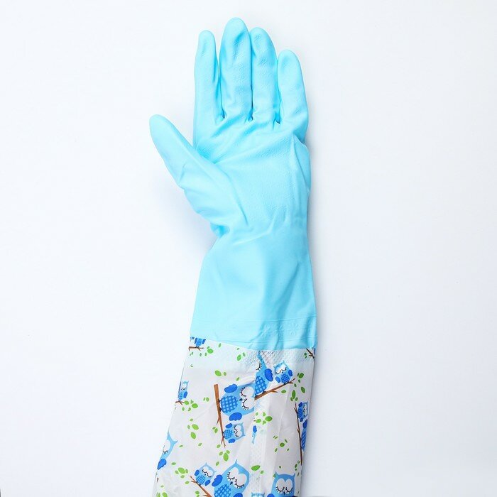 Доляна Перчатки хозяйственные с утеплителем, размер L, 45 см, ПВХ, длинные манжеты, рисунок микс
