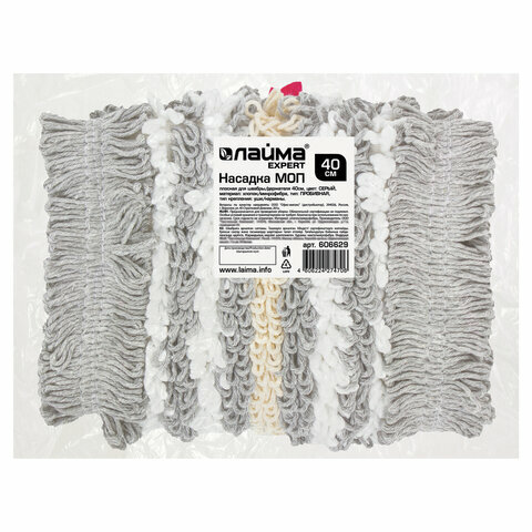 Купить Насадка МОП плоская для швабры/держателя 40 см, комплект 50 шт., ТИП У/К, хлопок/микрофибра, серая, LAIMA EXPERT, 606629, ТВ-17-15