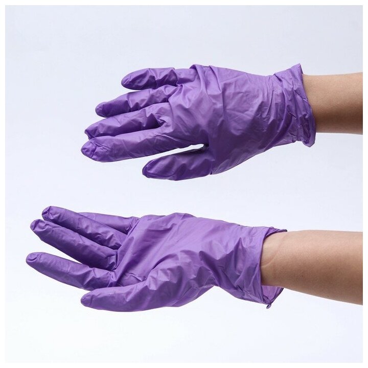 Перчатки медицинские Benovy, нитриловые, неопудренные, нестерильные, размер M, 50 пар, сиреневые
