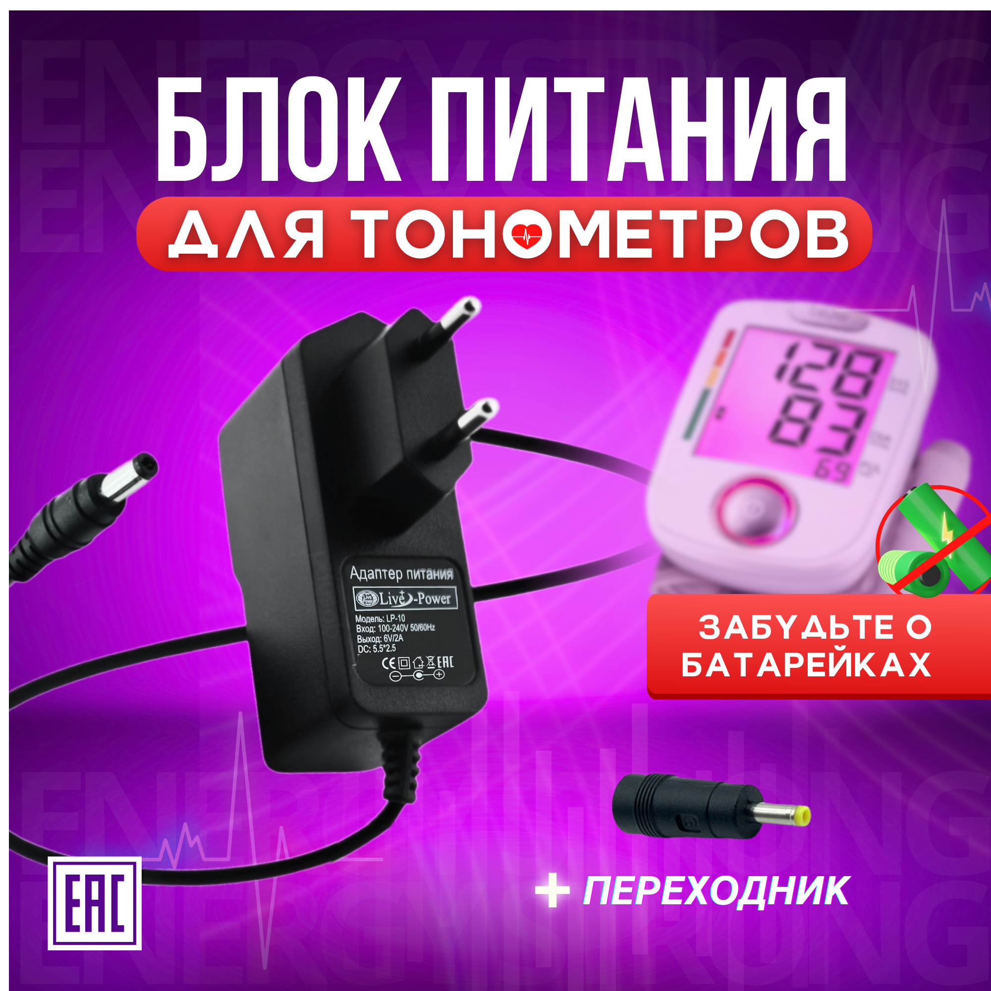 Адаптер сетевой для питания тонометров OMRON 6V/2A (с переходником в комплекте) интересное: