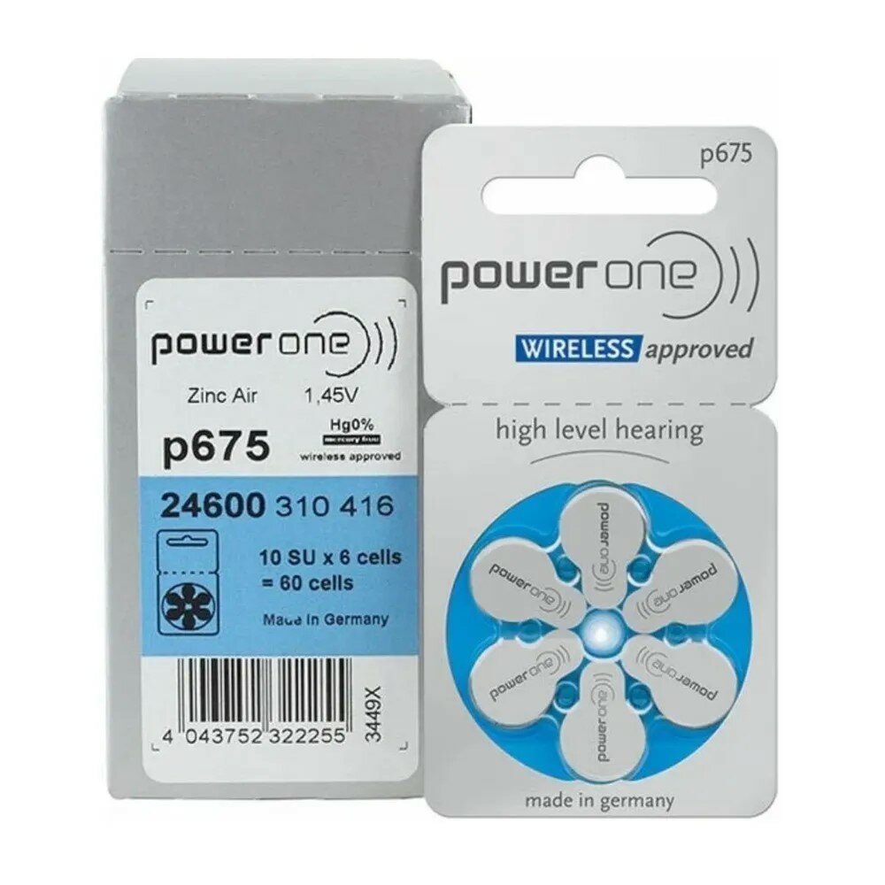 Батарейки для слуховых аппаратов PowerOne ZA675, 60 шт