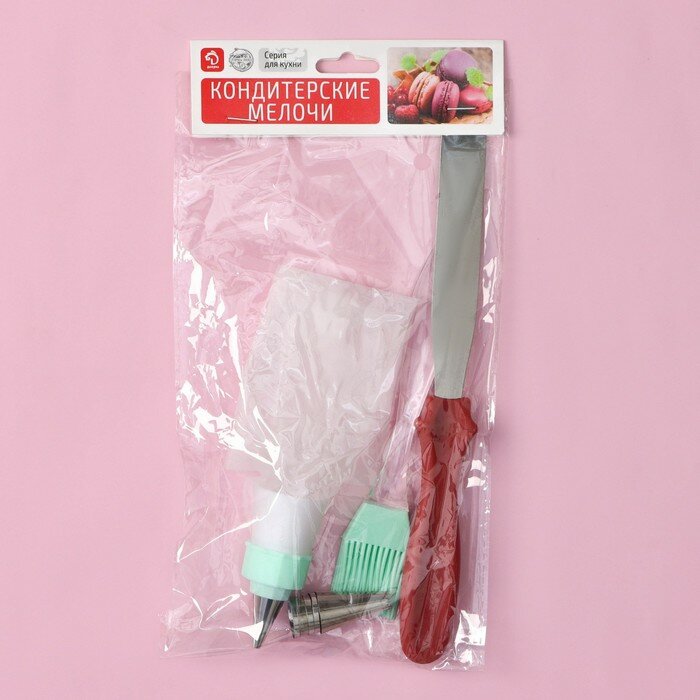 Набор кондитерский Доляна, 9 предметов: кисть 17 см, лопатка 23 см, 5 насадок, пакет и адаптер, насадки, цвет микс (арт. 4291068)