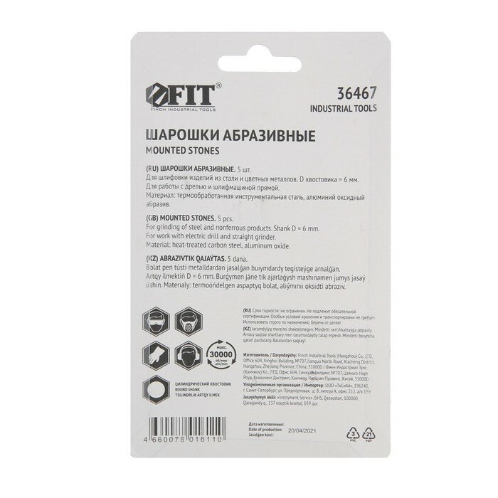 FIT Набор шарошек абразивных FIT, для фигурных отверстий по камню, большие, 5 шт. интересное: