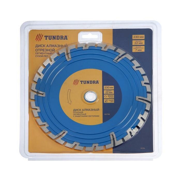 Диск алмазный отрезной TUNDRA, сегментный с защитными секторами, сухой рез, 230 х 22 мм TUNDRA 18577 .