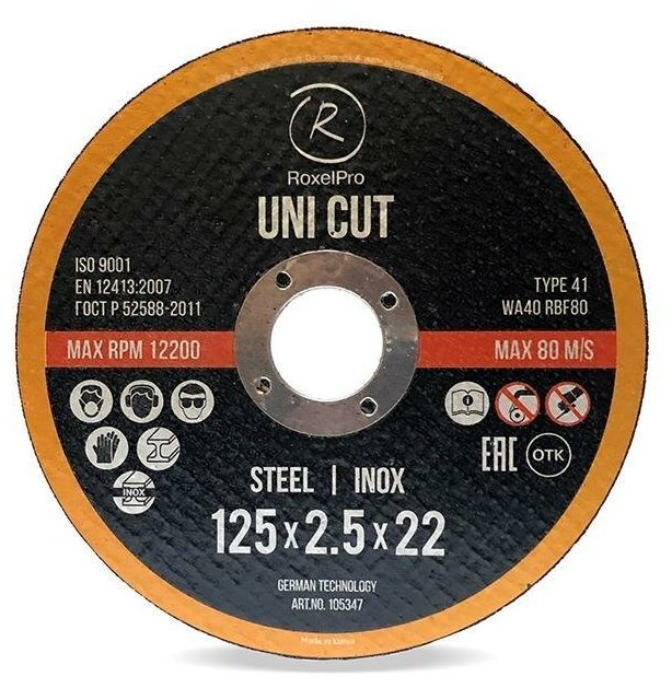 Круг отрезной 125*2,5*22мм ROXTOP UNI CUT , Т27, нерж.сталь, металл RoxelPro 105347 интересное:
