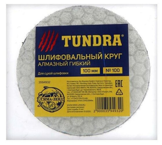 Алмазный гибкий шлифовальный круг тундра "Черепашка", для сухой шлифовки, 100 мм, № 100. В наборе 1шт. интересное: