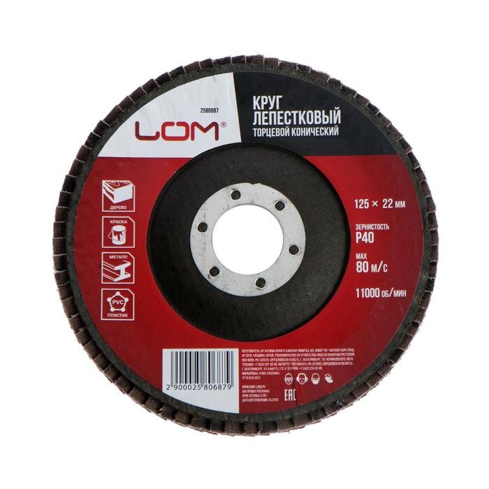 ЛОМ Круг лепестковый торцевой конический LOM, 125x22 мм, Р40 интересное: