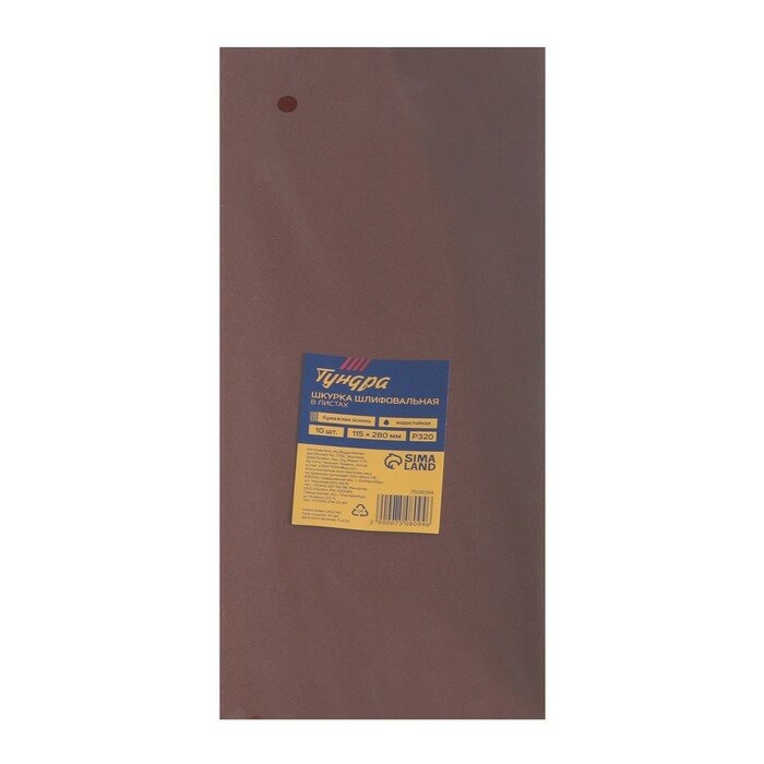 Купить Шкурка шлифовальная в листах тундра, на бумажной основе водост., 115 х 280, Р320, 10 шт.