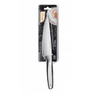 | Плюсы: | Отличный нож. Заточка супер. Есть зубцы на кончике ножа, для удобной резки овощей и курицы |