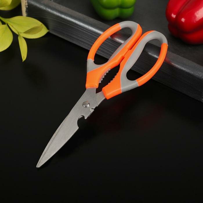 Ножницы кухонные Доляна «Драйв», 22 см, с открывалкой для бутылки, цвет микс