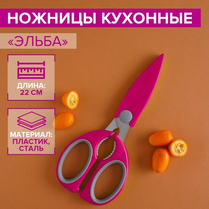Ножницы кухонные Доляна «Эльба», 22 см, цвет розовый