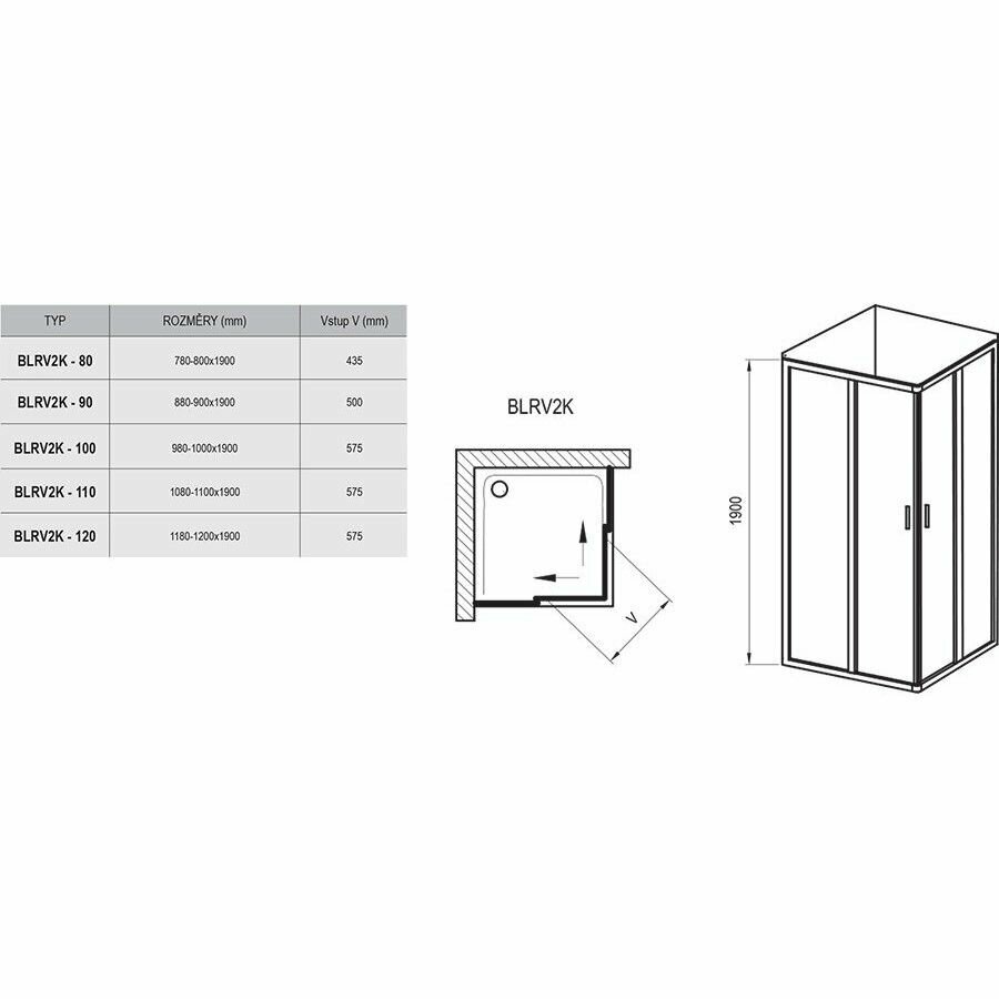Душевая дверь для уголка Ravak Blix BLRV2K-80 1XV40C00Z1 (800х800х1900мм) профиль блестящий/стекло Transparent